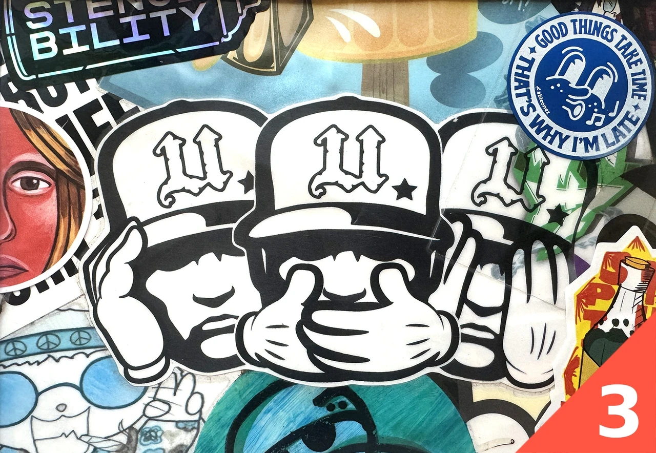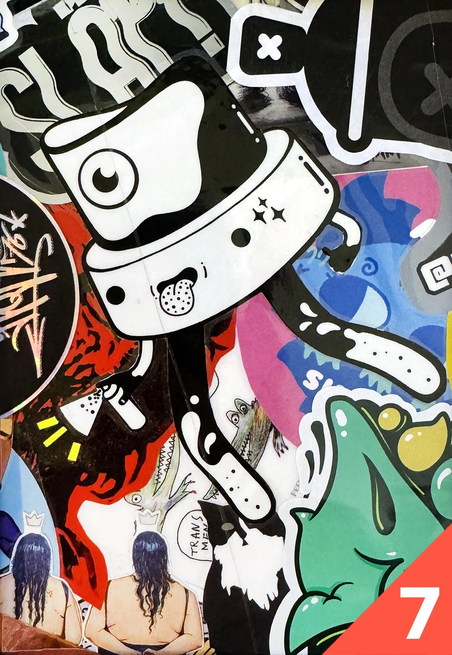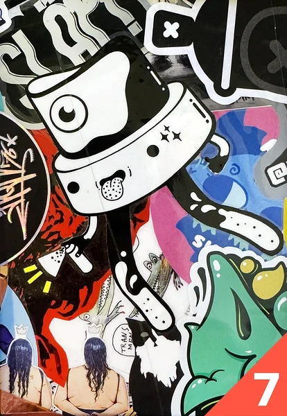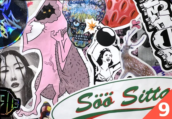 Tükike kleepsunäitusest, mis rändas 2 ja pool aastat linnaliini bussi küljes ringi mööda Tartut. Kaasas sertifikaat, mis tõestab teose originaalsust ja joonis, mis näitab täpselt, millisest kohast bussi pealt tükk on pärit.